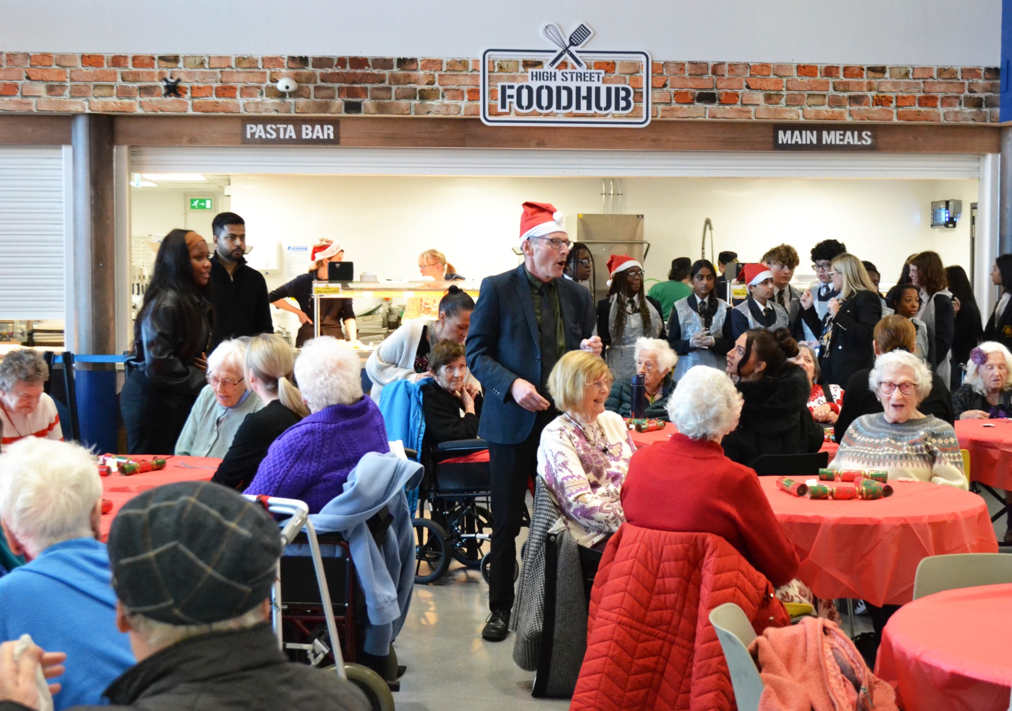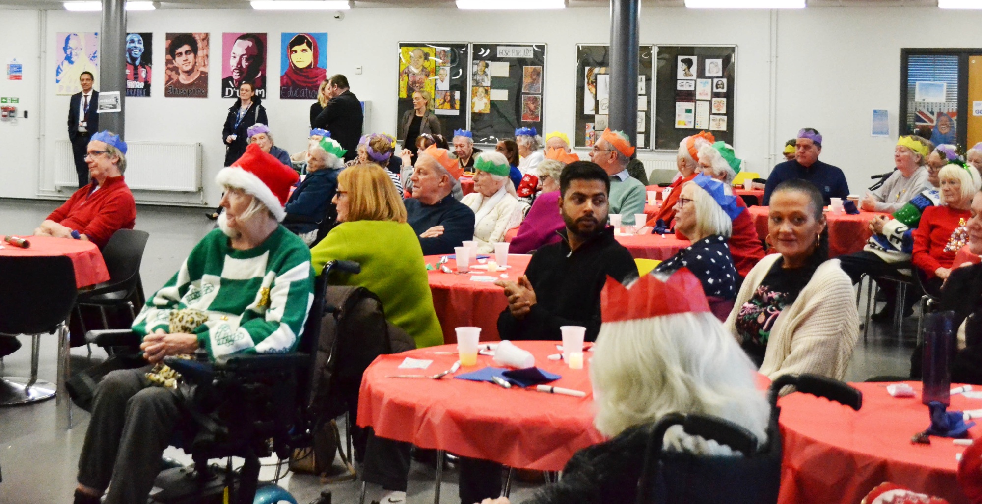On Wednesday 10th December President Kennedy School hosted its annual senior citizens Christmas meal. This event was attended by around 90 senior citizens from care homes in Coventry, and they had a fantastic time eating a full Christmas dinner and enjoying the school choir as well as playing bingo and a raffle.