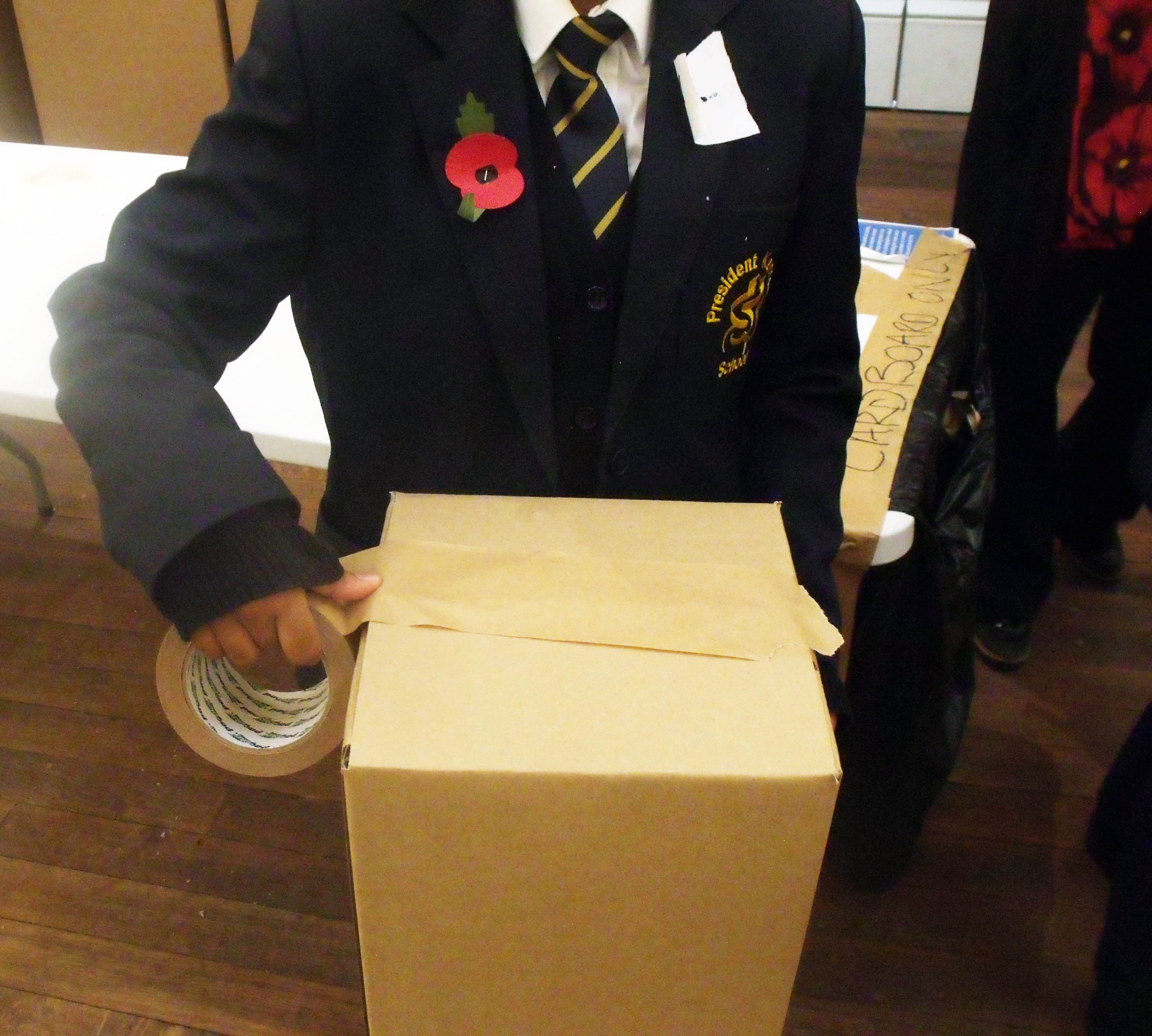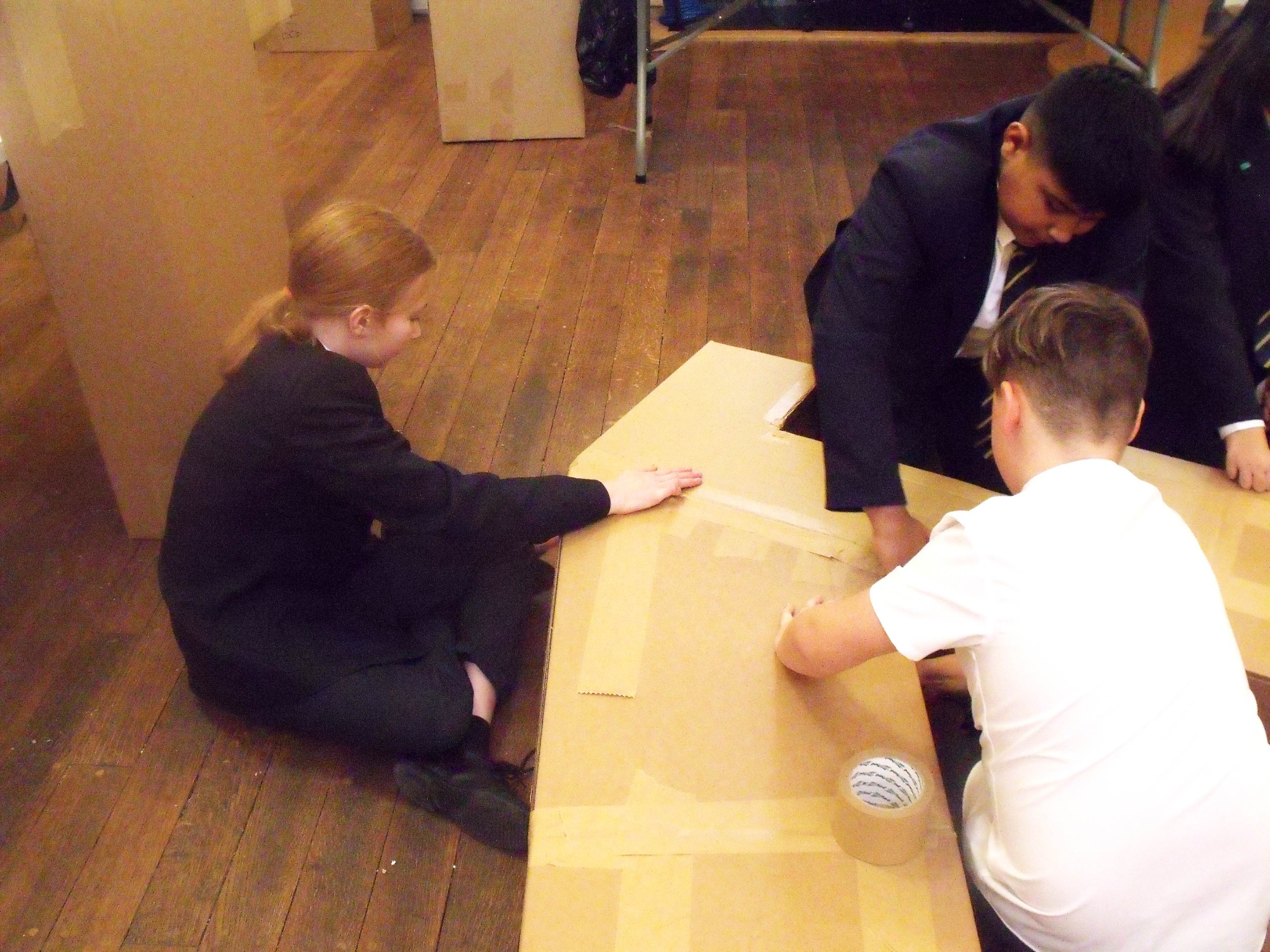 Coventry City Council ran week long workshops which involved creating a cardboard structure of Coventry old cathedral which was bombed during the Blitz.
