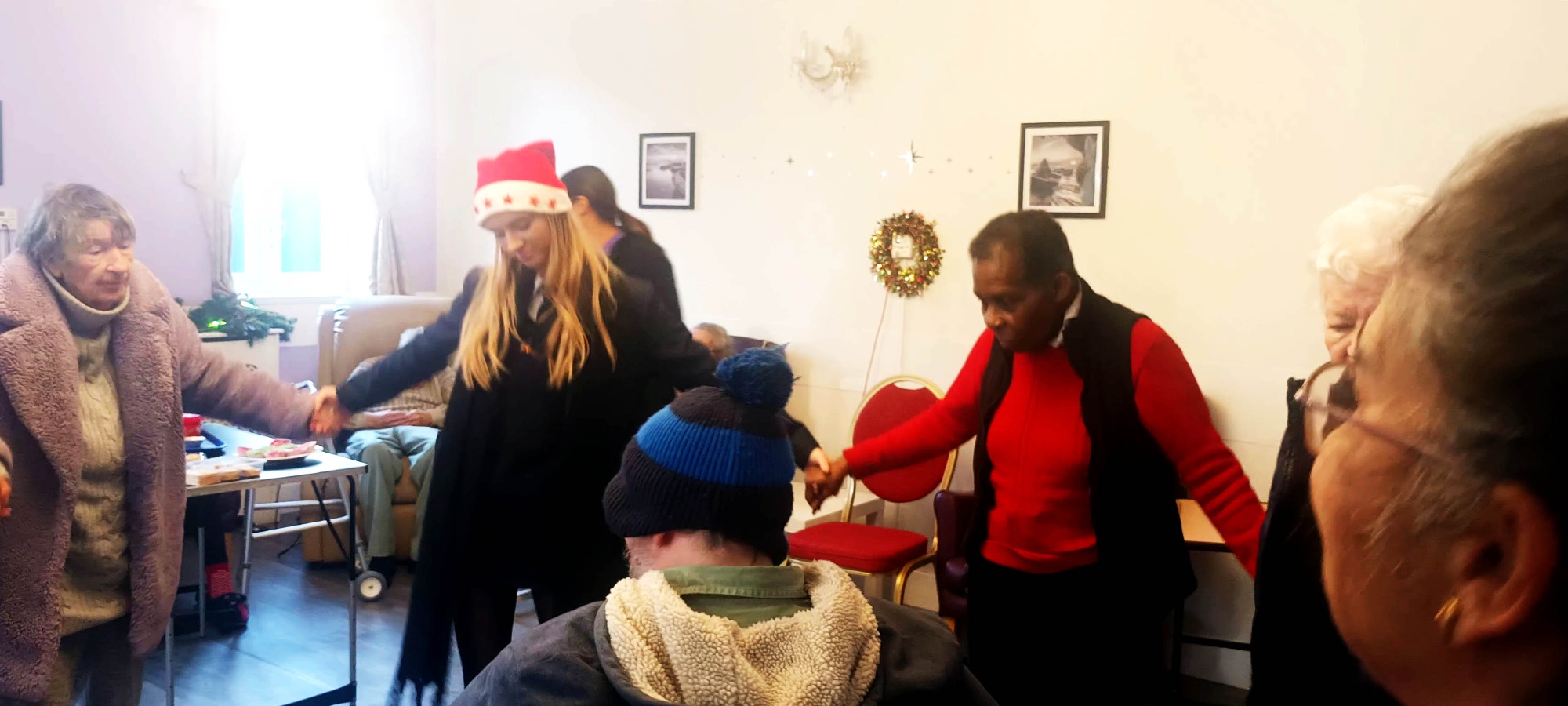The girls served cold drinks and mince pies to the residents and sang Christmas songs, engaging the residents in singing and dancing. Everyone had lots of fun!