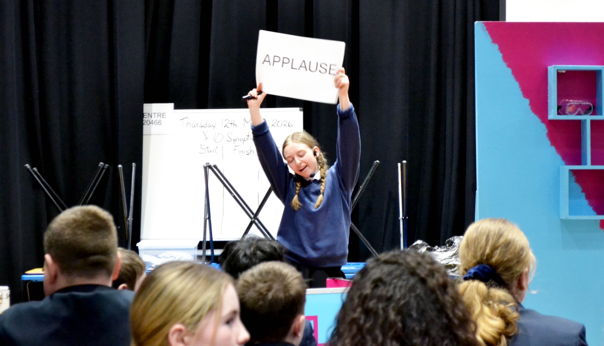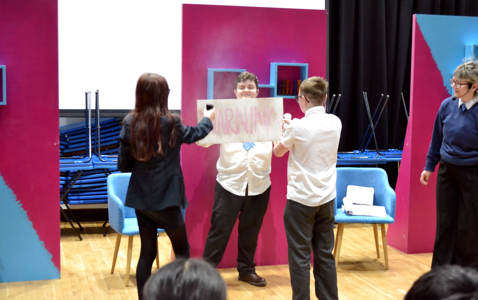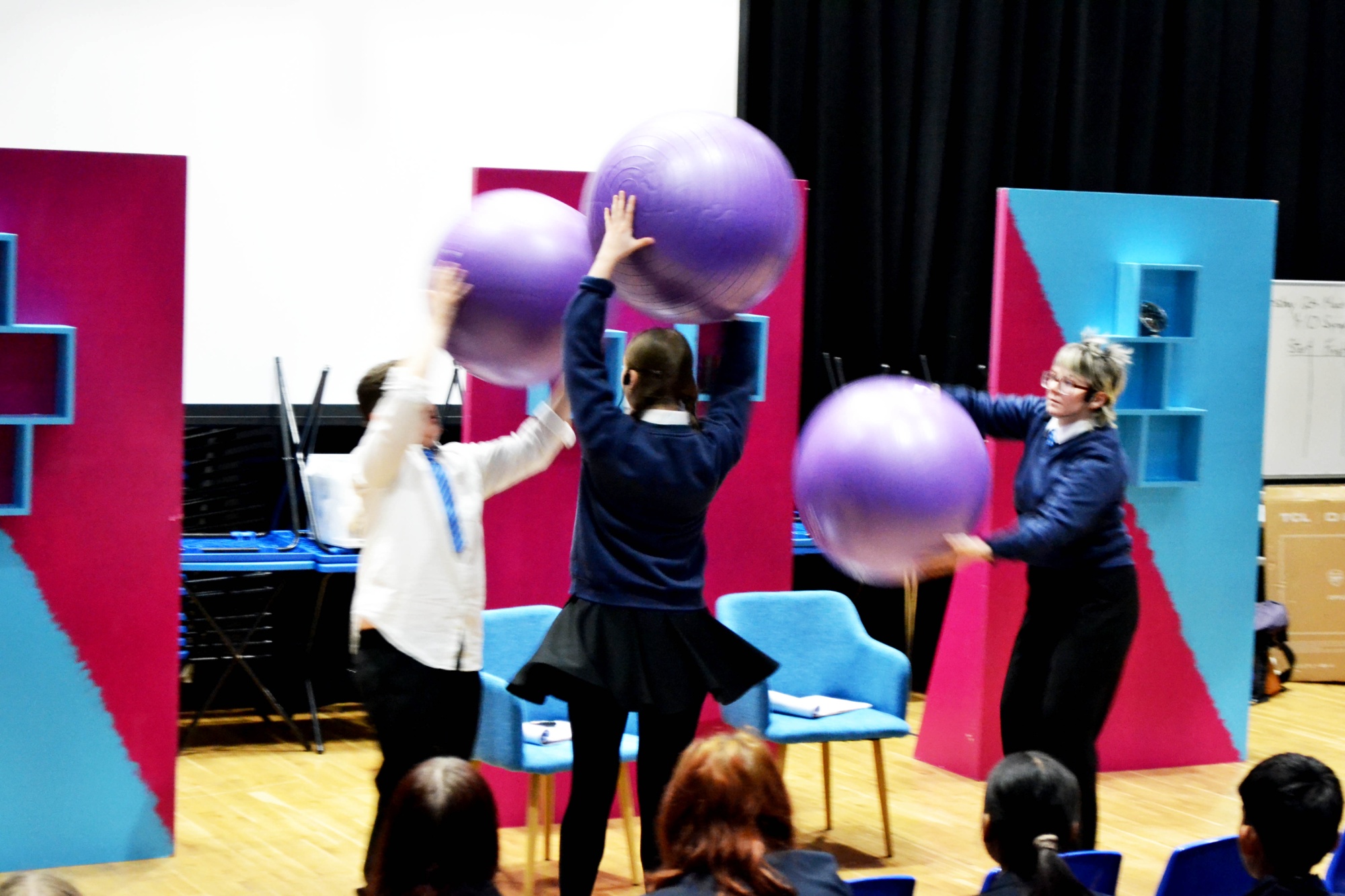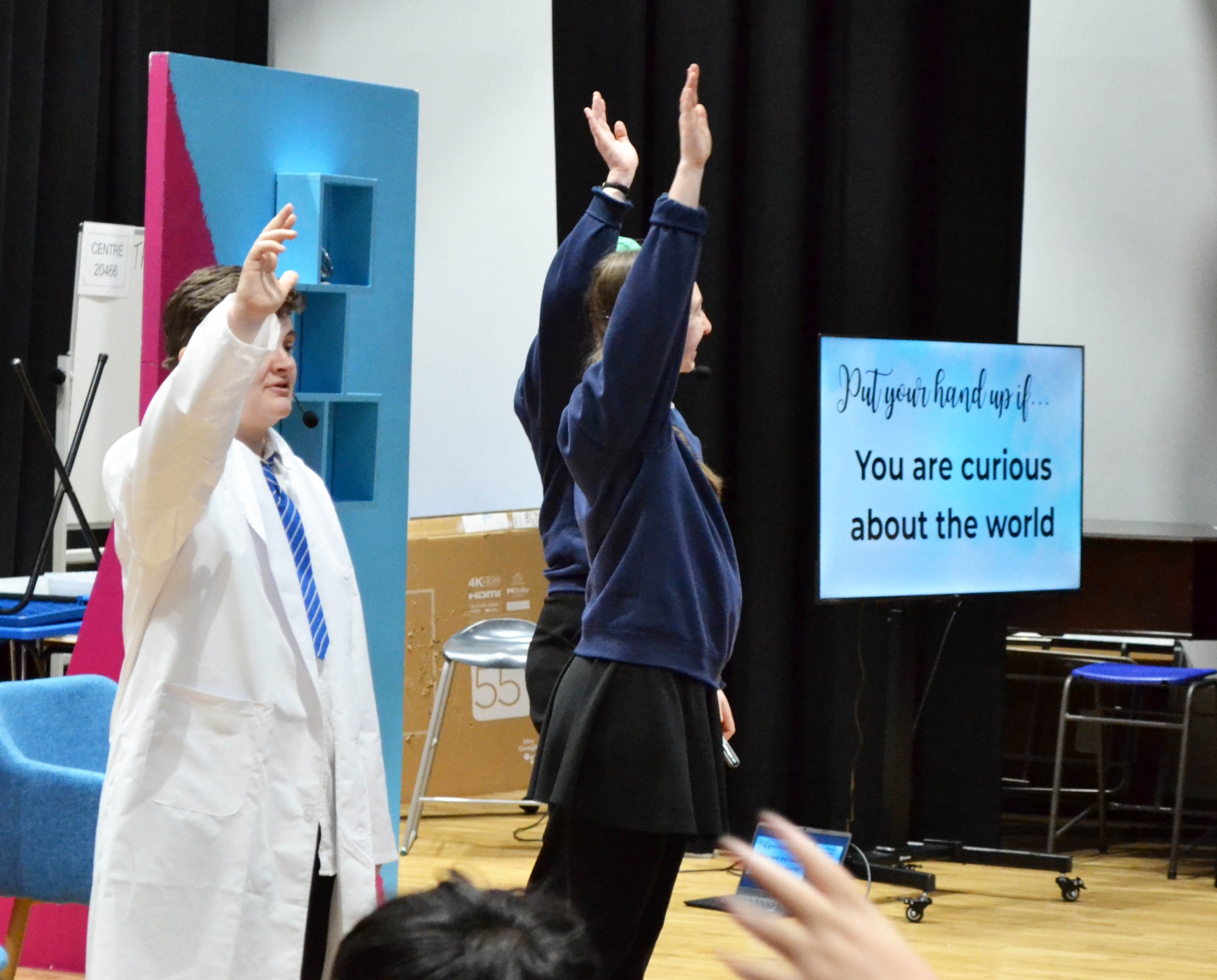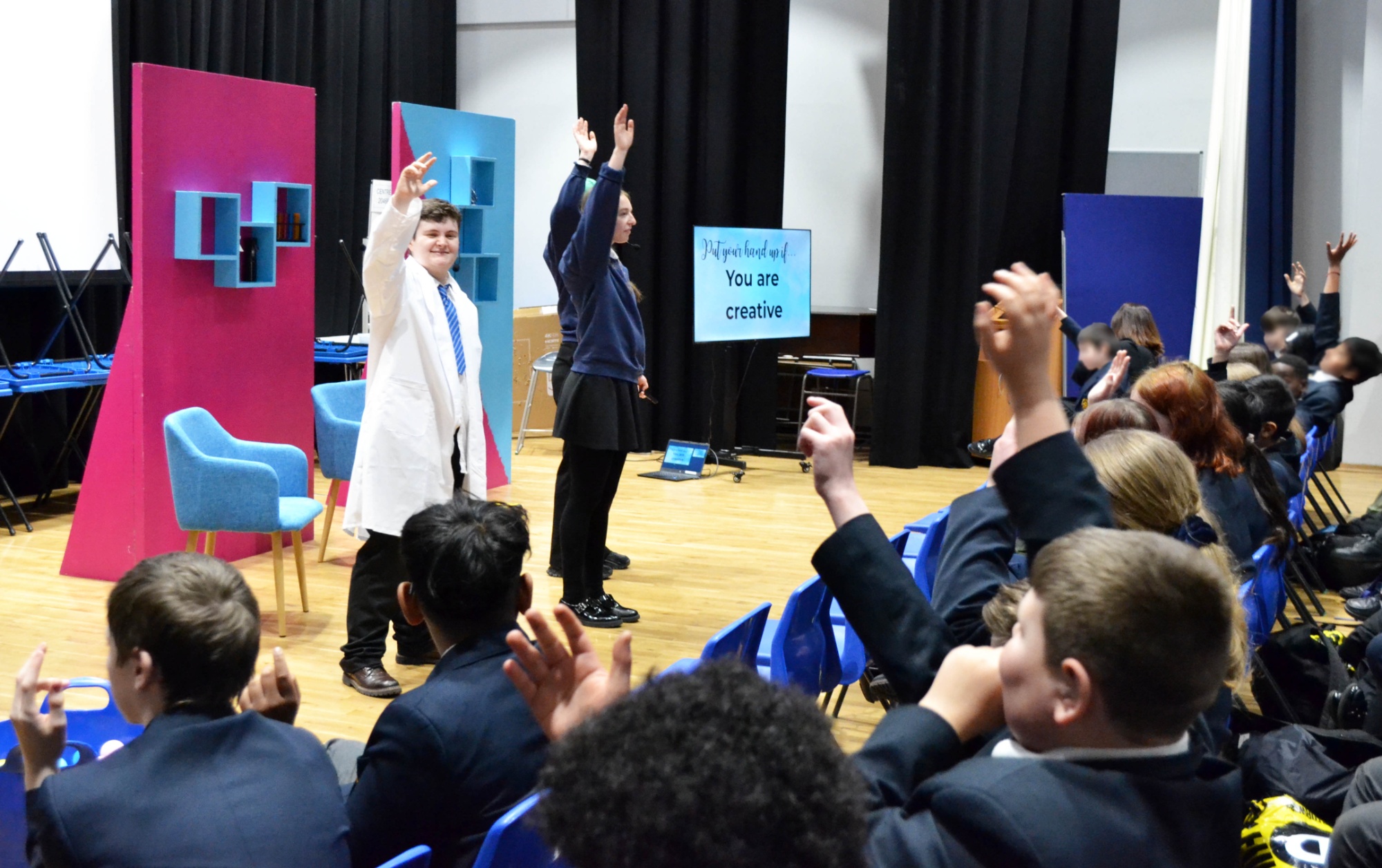 Students were fully immersed from start to finish. Volunteers joined the presenters on stage, the audience took part in exciting challenges, and the whole room was buzzing with movement and laughter.