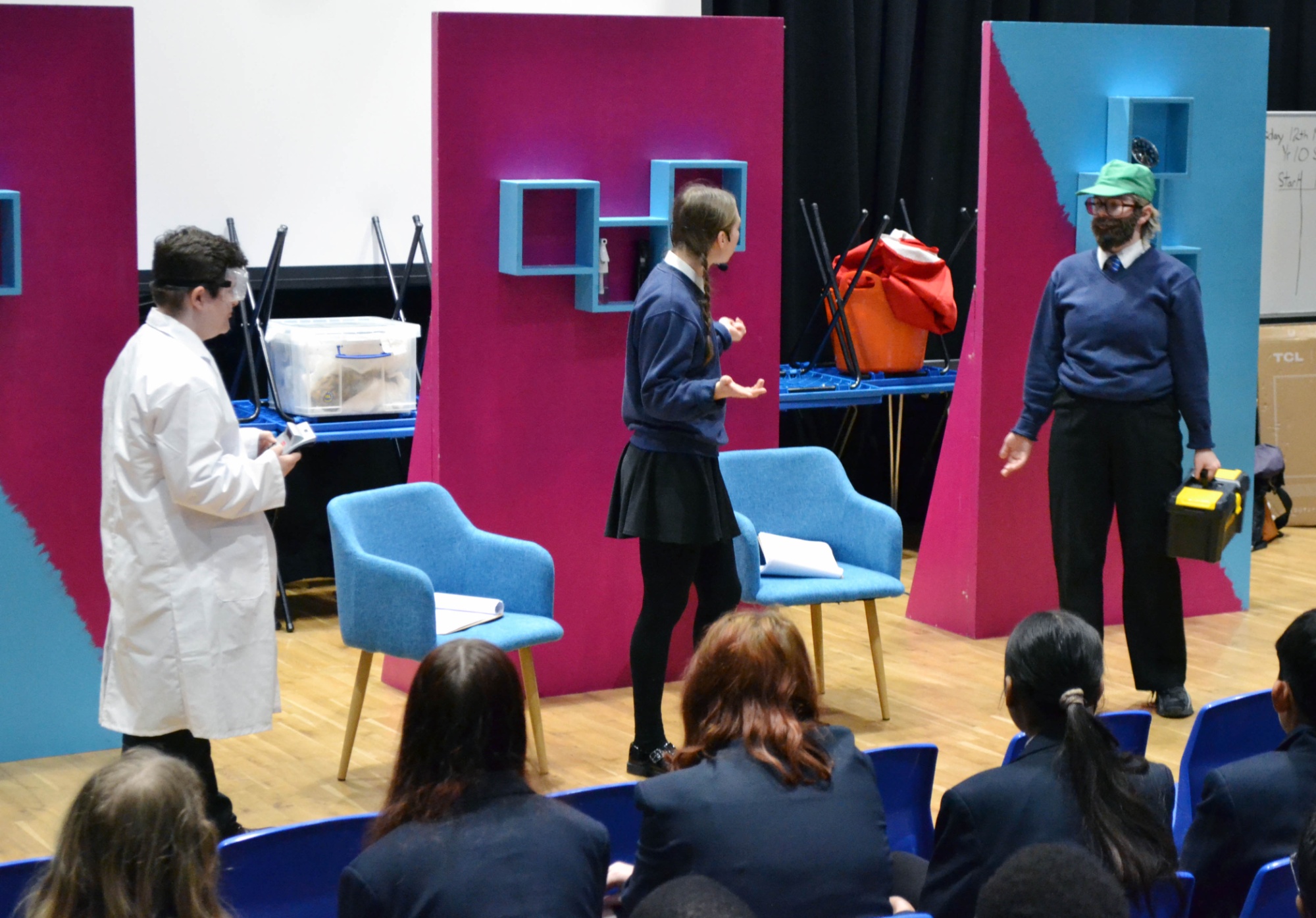 The roadshow transformed our school hall into a vibrant theatre of discovery. Delivered by education specialists from 'Hi-Impact' and 'Altru Drama', the show combined live demonstrations, and hands‑on participation to explore the fascinating world of materials and modern engineering.